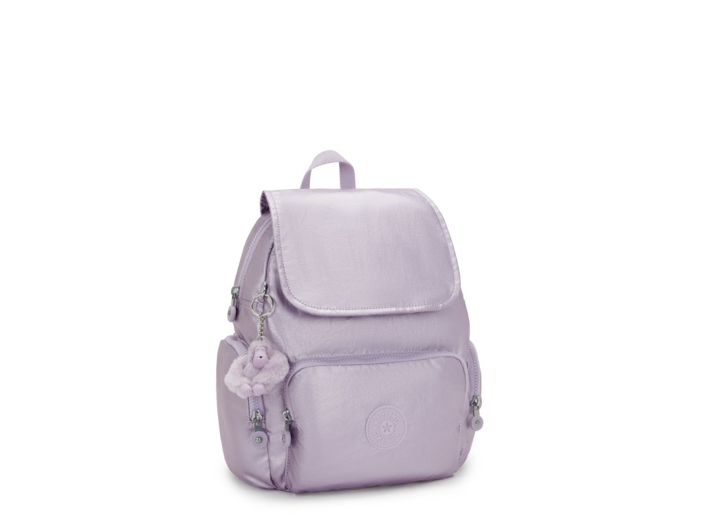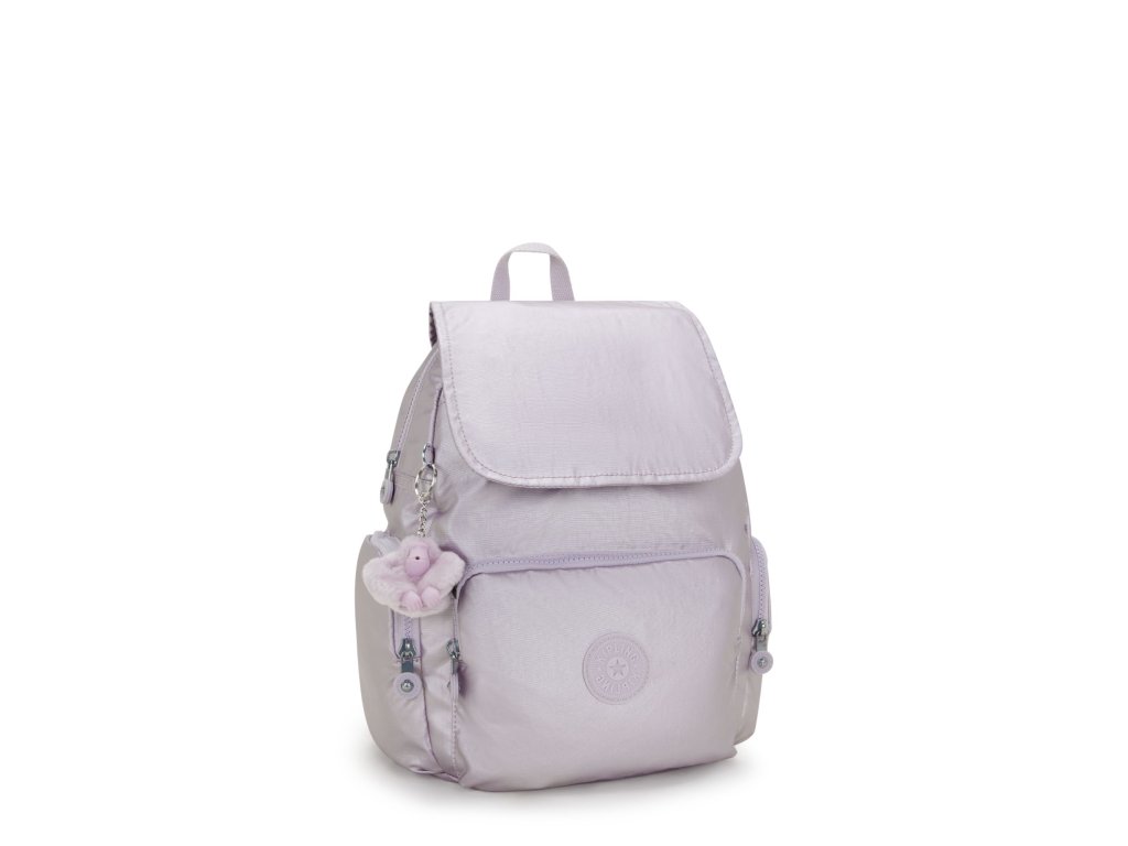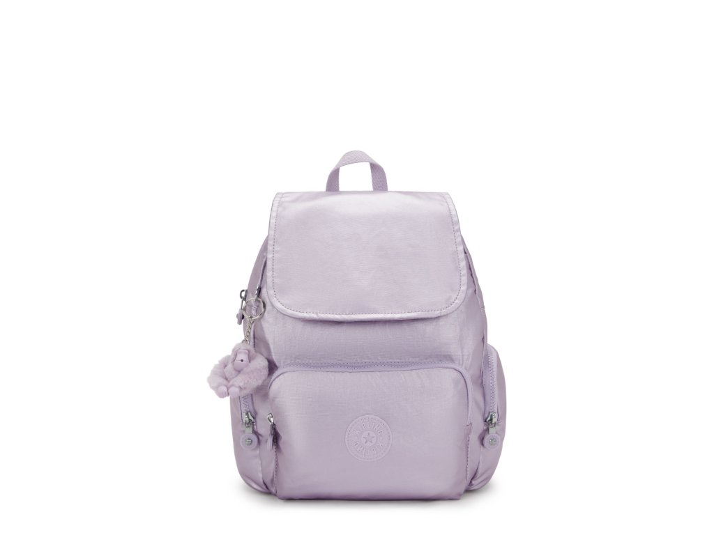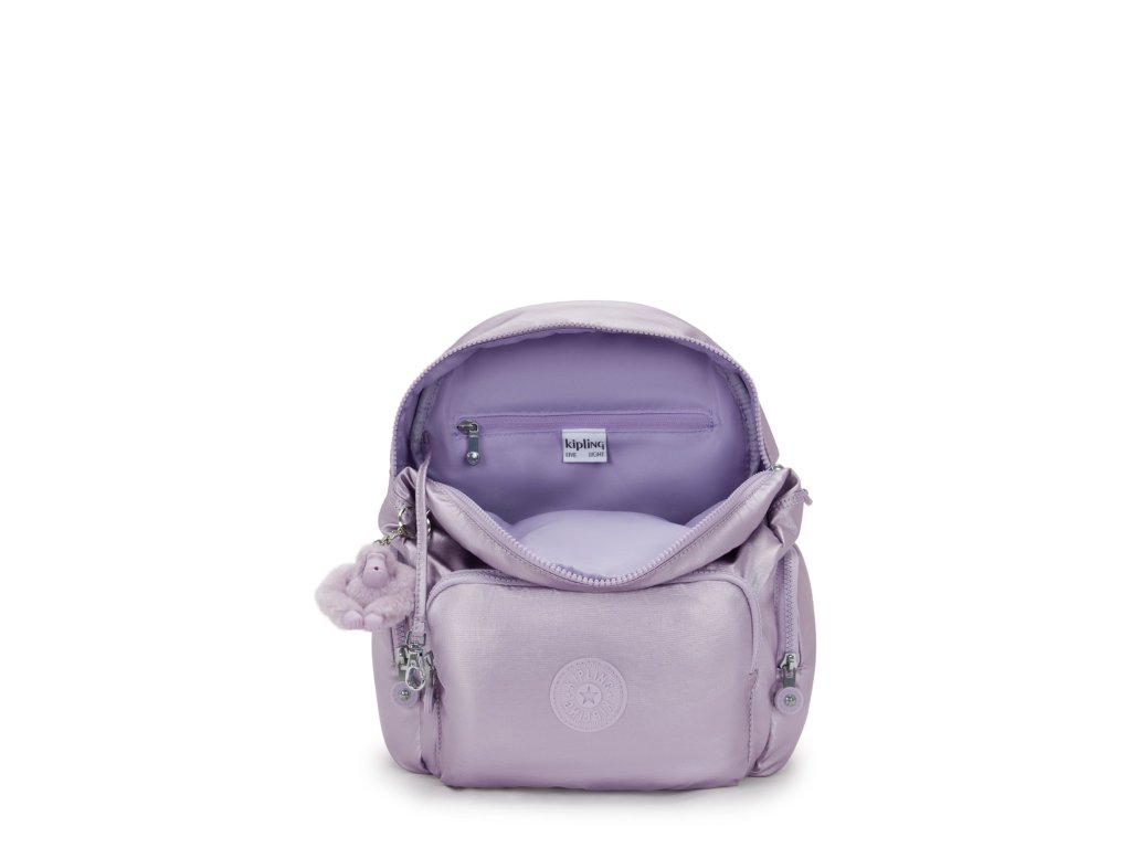 - Malý městský batoh Kipling CITY ZIP S v odstínu Lilac Moon Metallic