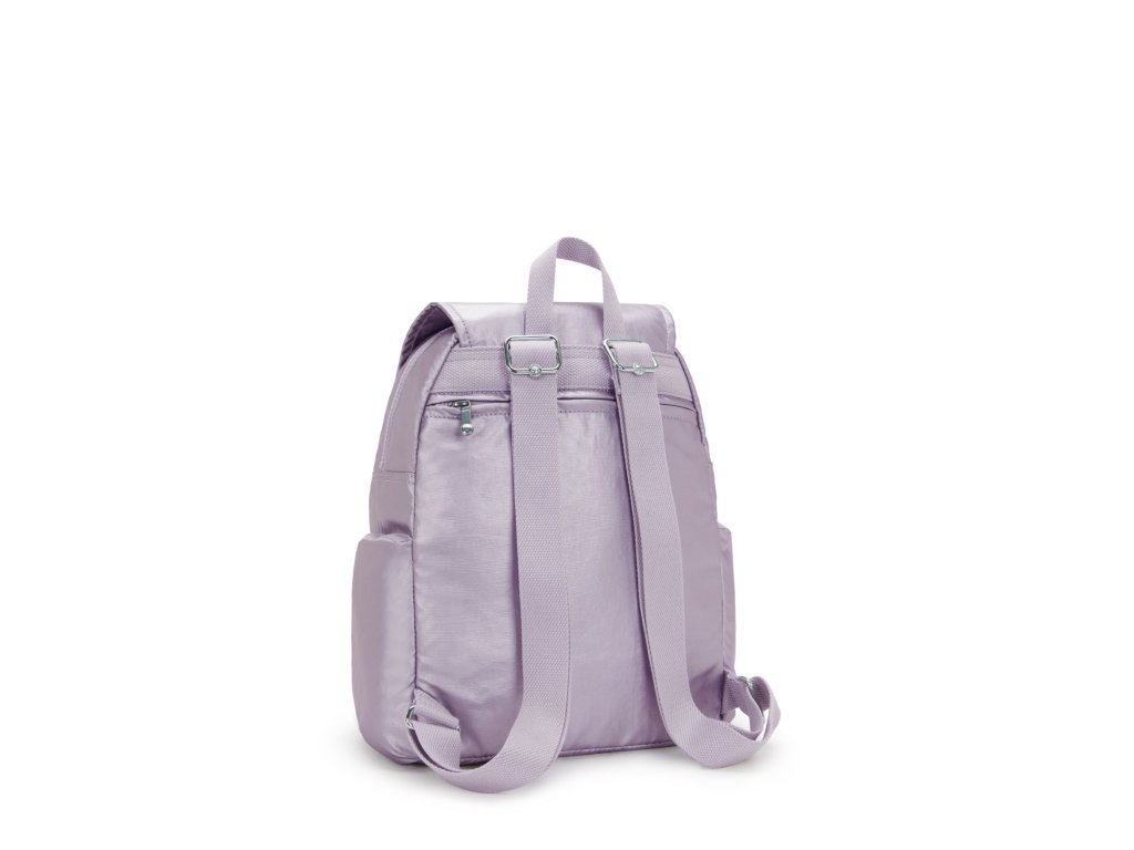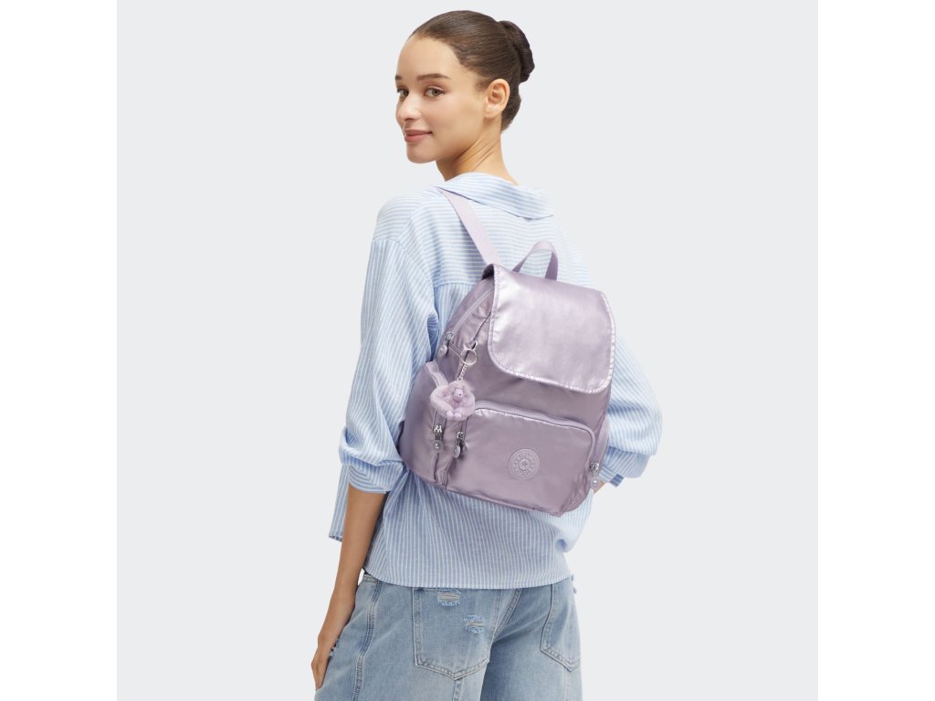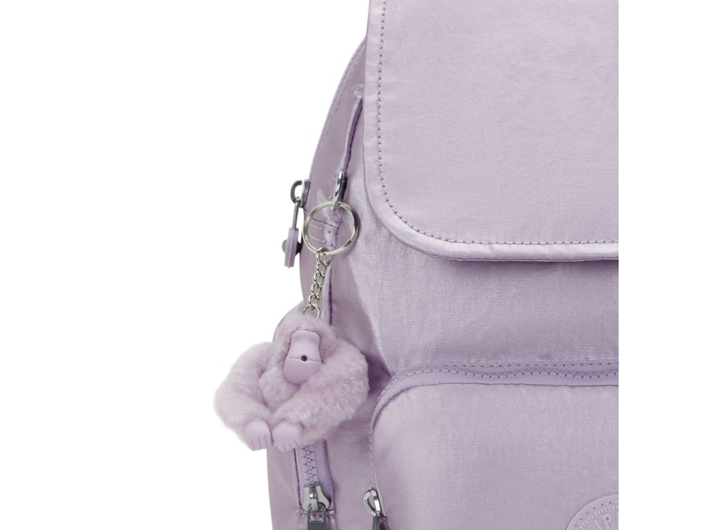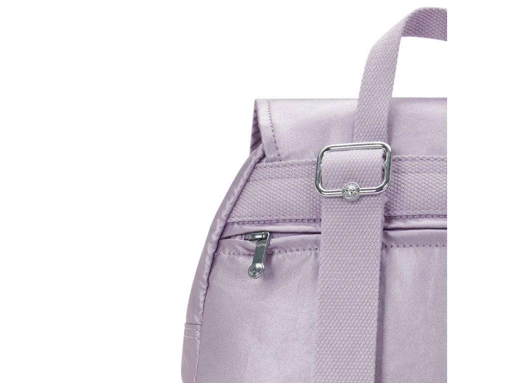 - Malý městský batoh Kipling CITY ZIP S v odstínu Lilac Moon Metallic
