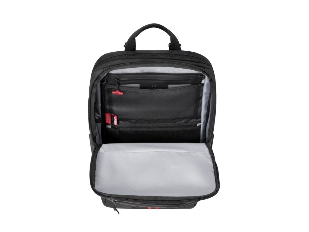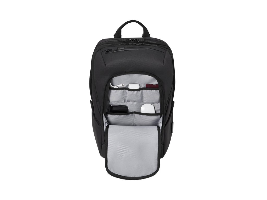 - integrovaný organizér uvnitř přední kapsy na zip na drobnosti jako sluchátka, nabíječka nebo myš k notebooku