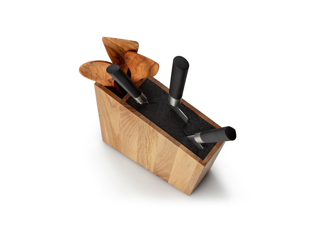 Blok na nože s flexi vložkou a přihrádkou, dub Continenta
