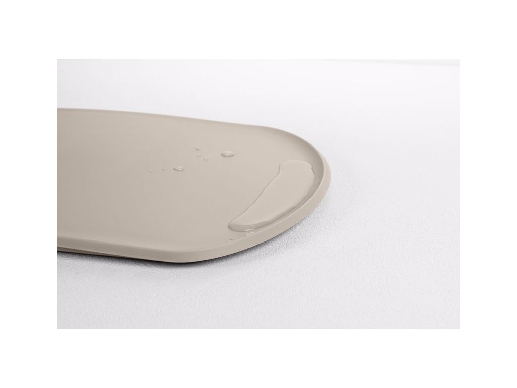 - na kratších stranách desky jsou prohlubně se zvýšeným okrajem, které zabraňují vylití tekutiny