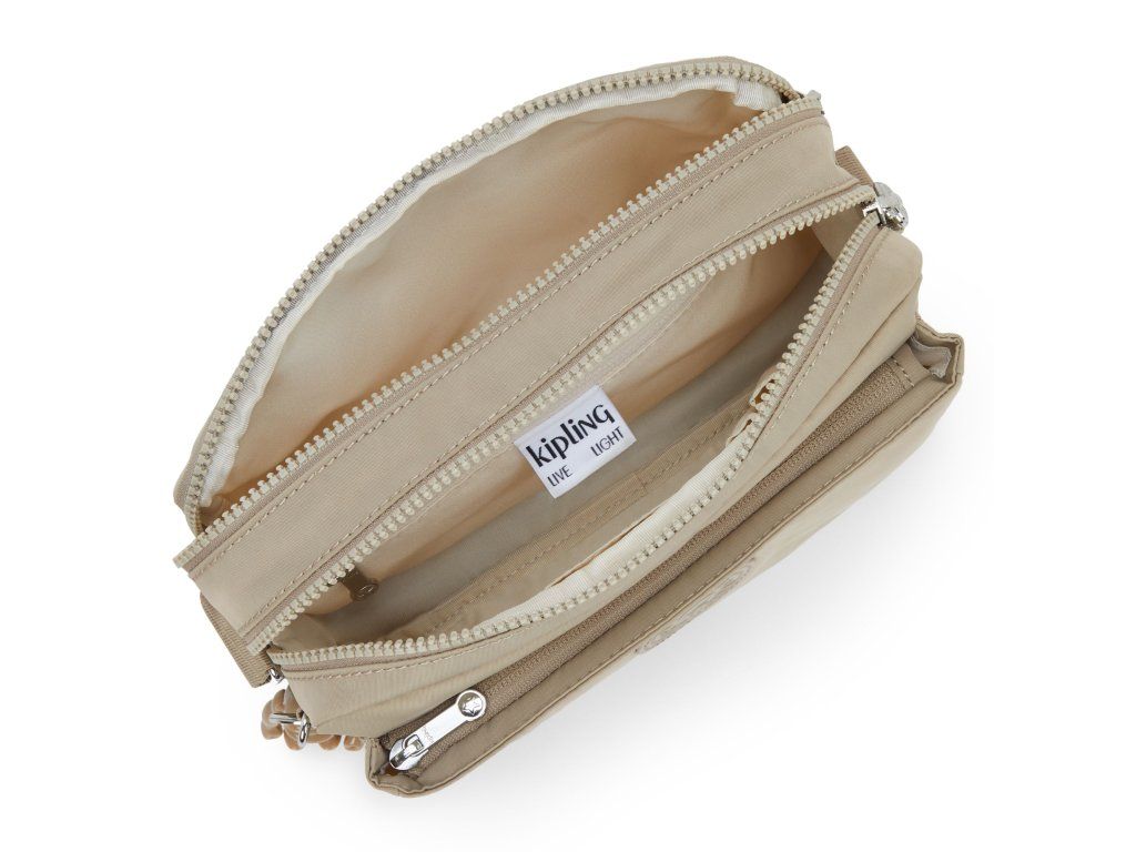 Stylová crossbody kabelka Kipling ABANU M v hřejivém odstínu Boho Tan je ideální volbou pro každodenní nošení. Díky dvěma samostatným zipovým komorám a promyšlenému systému kapes budete mít všechny své nezbytnosti dokonale uspořádané. Odolný a zároveň lehký materiál z recyklovaného polyesteru zajišťuje komfort i dlouhou životnost.