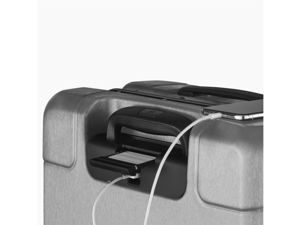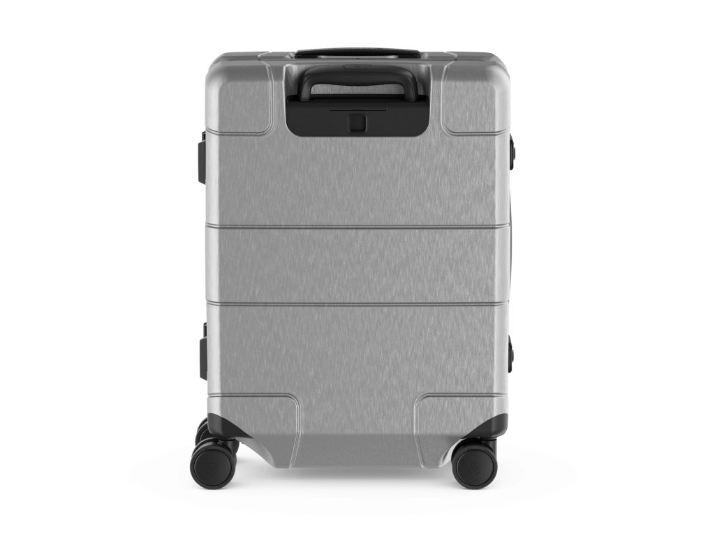 - Lehké a odolné kabinové zavazadlo z polykarbonátu ve stříbrné barvě