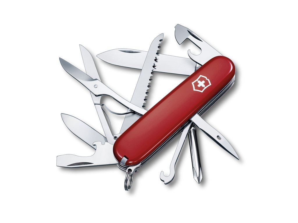 | Funkce: | Háček víceúčelový, Kroužek na klíče, Nůžky, Nůž malý, Nůž velký, Odstraňovač izolace, Otvírák na lahve, Otvírák na konzervy, Párátko, Pilka na dřevo, Pinzeta, Šroubovák mini, Šroubovák křížový, Šroubovák jemný, Výstružník, průbojník |