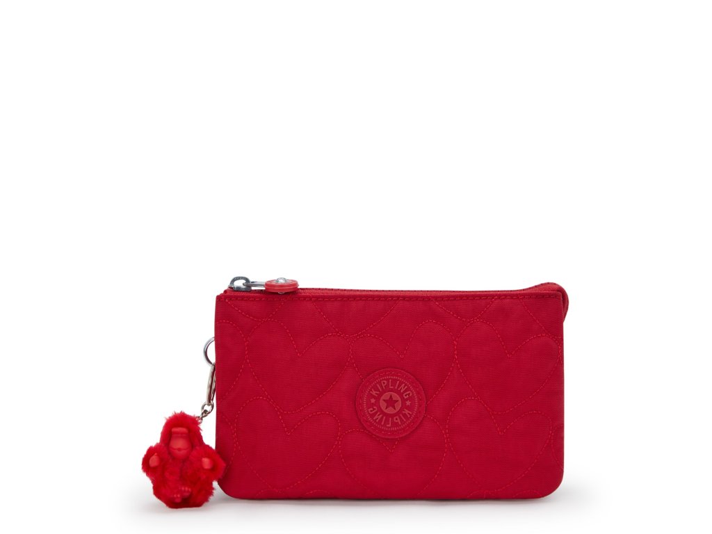 Organizér Kipling Creativity L z valentýnské kolekce zaujme výraznou červenou barvou a prošívaným motivem srdcí. Je vyroben z odolného krčeného nylonu, který je lehký, pevný a snadno se udržuje.