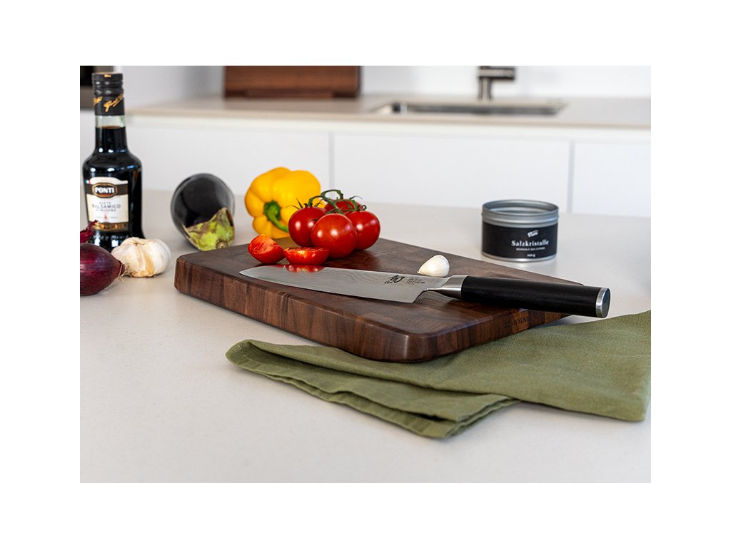 Prkénko Continenta Endgrain je vyrobeno z kvalitního ořechového masivu a kombinuje robustní konstrukci s elegantním mozaikovým vzorem z jednotlivých dřevěných kostek. Viditelné letokruhy dodávají povrchu odolnost a estetický vzhled. Spodní zkosení zajišťuje pohodlné uchopení a usnadňuje manipulaci při přípravě surovin.