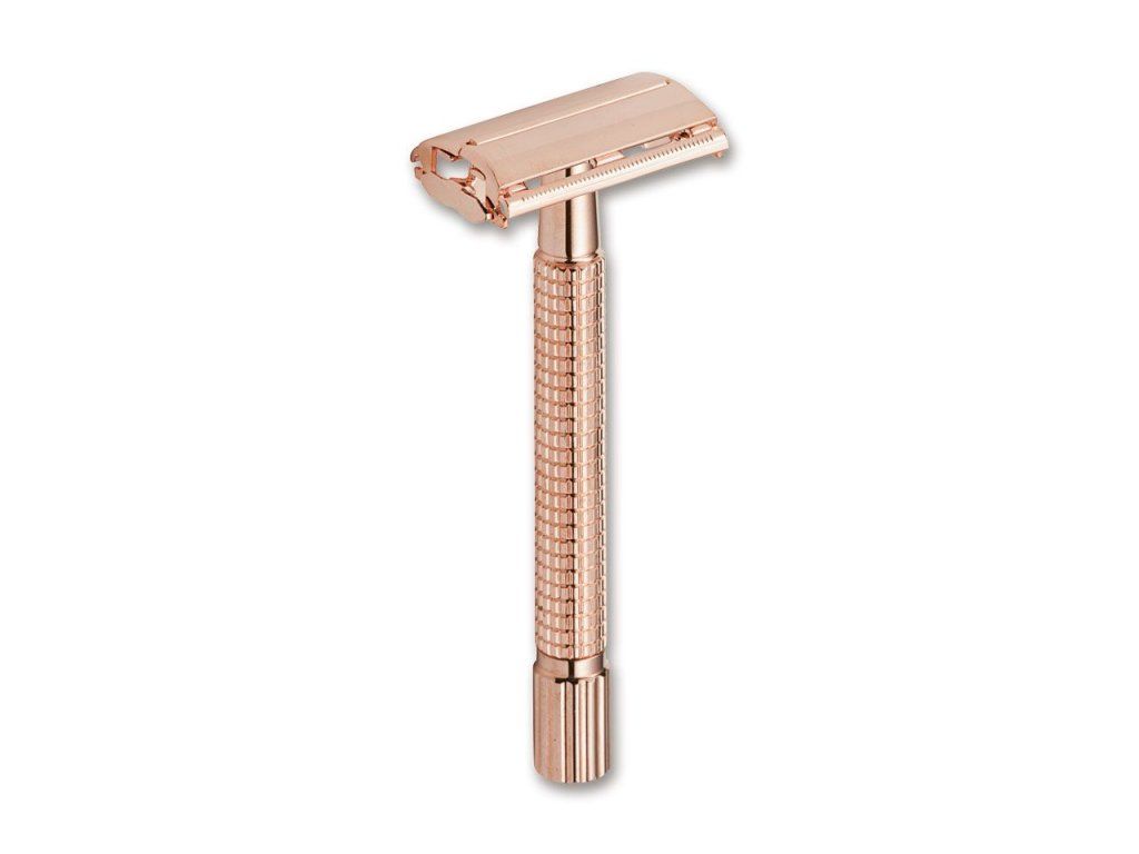 - Kompatibilita: Strojek je kompatibilní s klasickými dvousečnými žiletkami, což umožňuje ekonomické a ekologické holení bez nutnosti používání plastových náhrad.