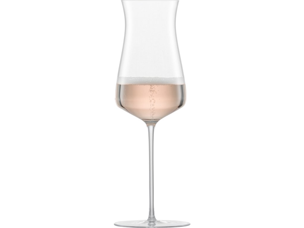 Sklenice na šumivé růžové víno typu Champagne. Sklenice má tzv. "bod perlení", který omezuje unikání bublinek z perlivého nápoje jen z tohoto bodu a tudíž zachová perlivost po delší dobu.