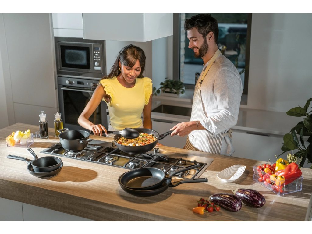 Exkluzivní dno odolné proti deformaci umožňuje použití na všech typech sporáků, včetně indukce.Silnostěnné tělo z broušeného hliníku: