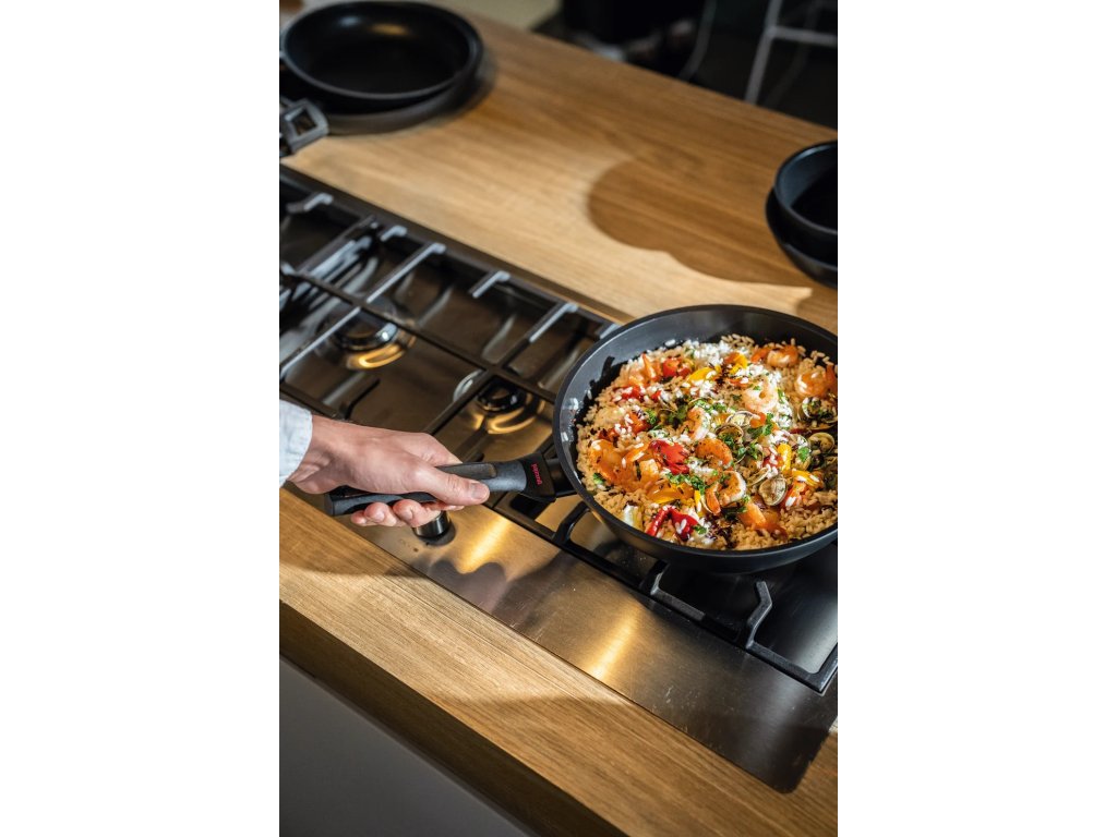 Pohodlná rukojeť s pevným úchopem, vyrobená z nehořlavého syntetického materiálu, chrání vaše ruce před intenzivním teplem.