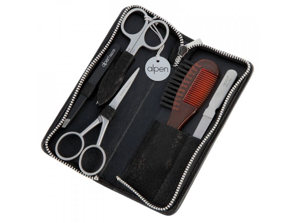 Sada na manikúru a úpravu vousů Inox kožená Alpen