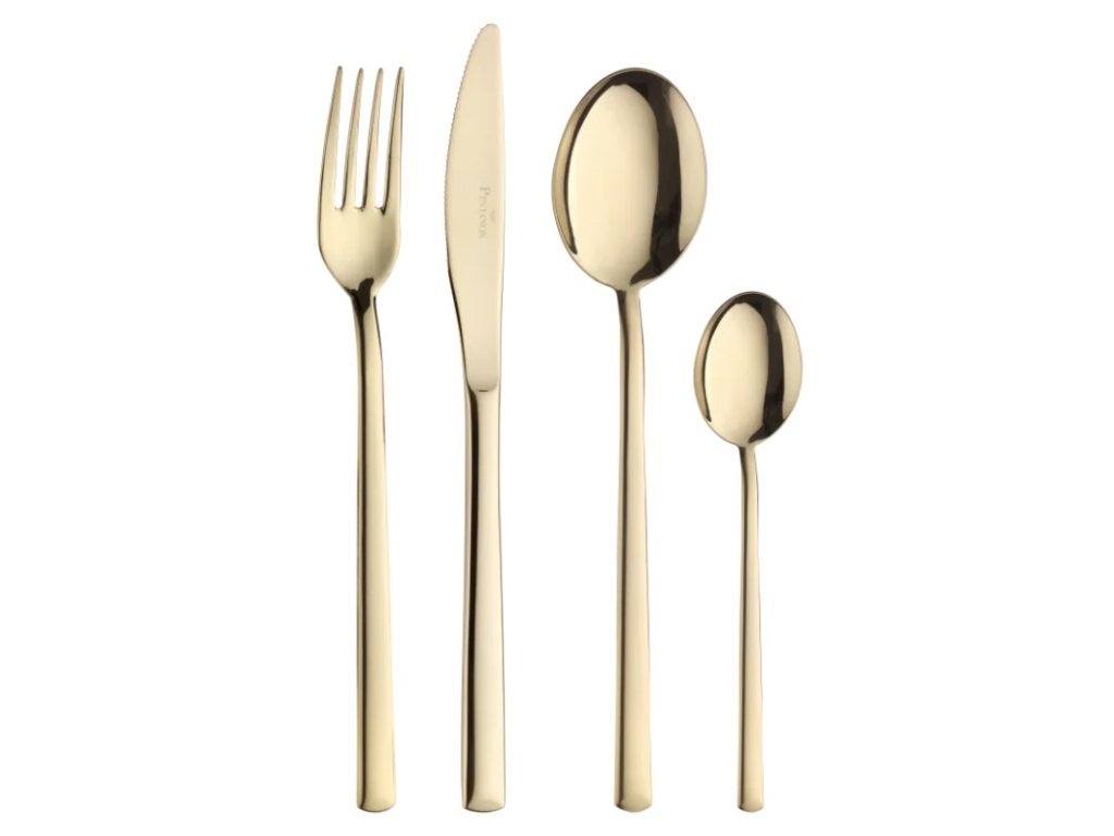 Příbory Synthesis Treasure Gold jsou nejen funkční, ale i estetickým klenotem pro váš stůl. Díky špičkovým technologiím je povrch ošetřen PVD povlakem, který zajišťuje výjimečnou tvrdost a odolnost, aniž by ovlivnil lesk nebo bezpečnost pro kontakt s potravinami. Tato kolekce přináší harmonii mezi tradicí, elegancí a moderním zpracováním.