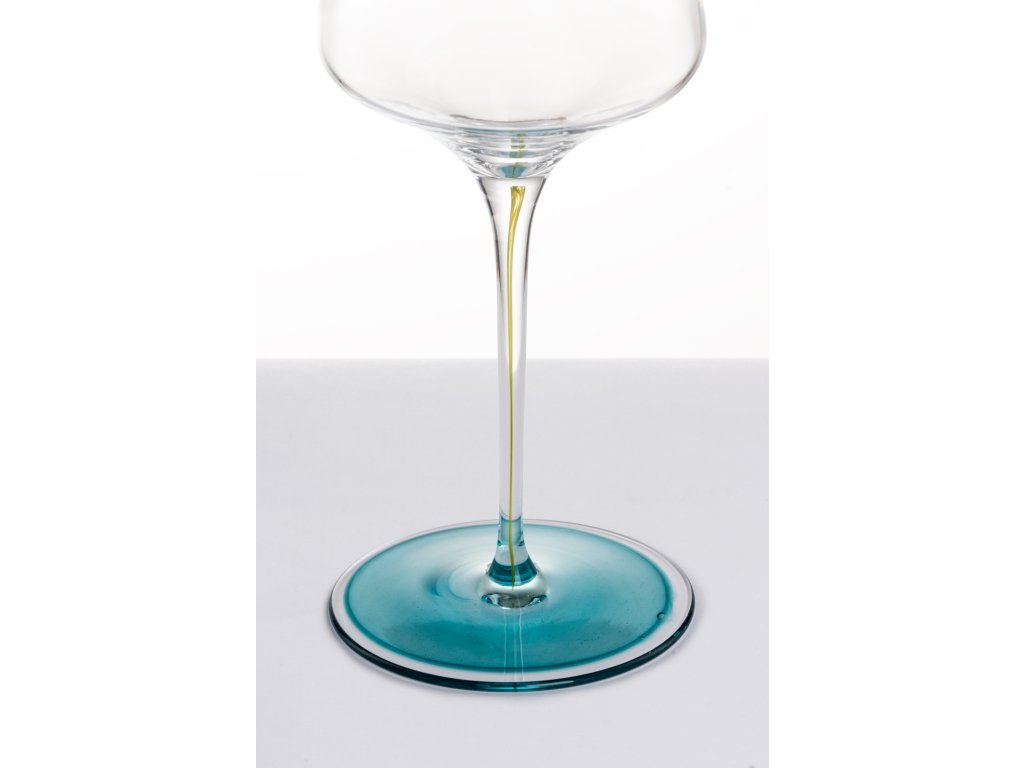 Velmi nároční postup výroby - každá sklenice ma danou barevnost stopky a základny - nelze změnit na přání - barva stopky a základny se ne vždy shoduje (například základna hnědá a linka ve stopce tyrkysová)
