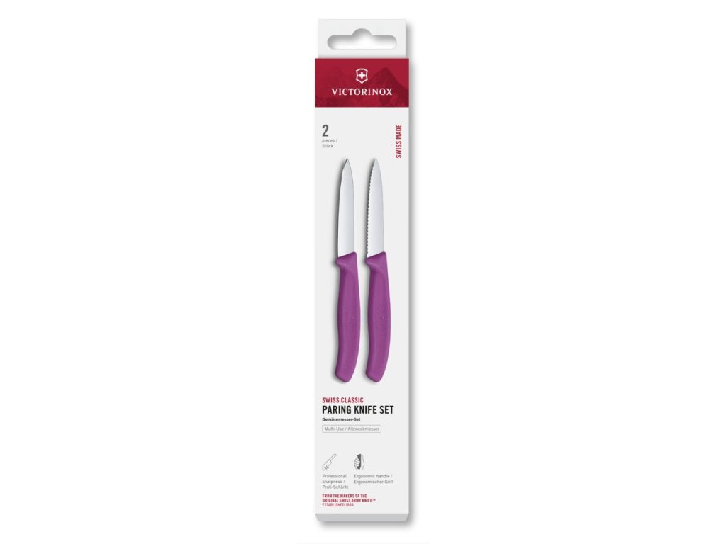 Sada nožů na loupání Victorinox Swiss Classic 2 ks 8 cm rovné/vroubkované špičaté ostří fialové VICTORINOX