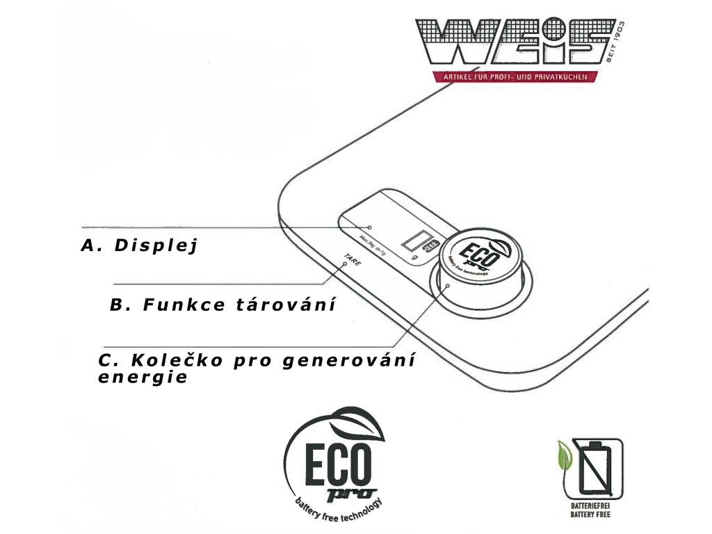 - dobíjení pouhým otáčením kolečka Eco Pro